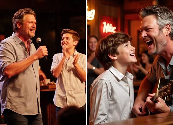 Blake introduced him proudly, calling it a “family moment to remember,” while Gwen watched from the audience, smiling and recording every second. Zuma performed a classic country tune with charm and ease, earning cheers and applause from the packed room.