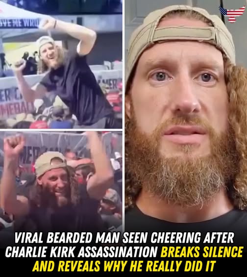 A man with a beard who was caught on camera celebrating in the chaos after Charlie Kirk’s assassination has come forward and said that people misunderstood what he did.